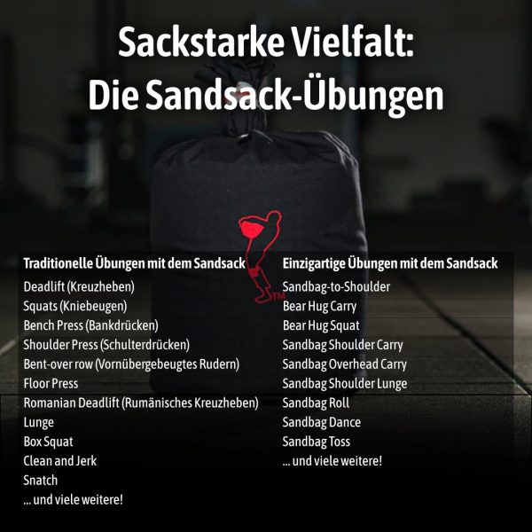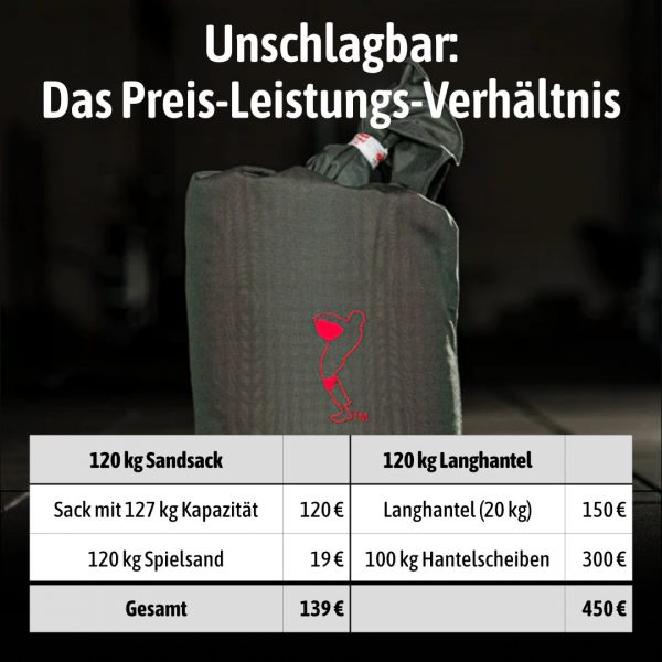 Der Sandsack deckt Schwächen sofort auf und trainiert sie mit. Schon bei moderaten Gewichten baut man Kraft und Muskelmasse auf.